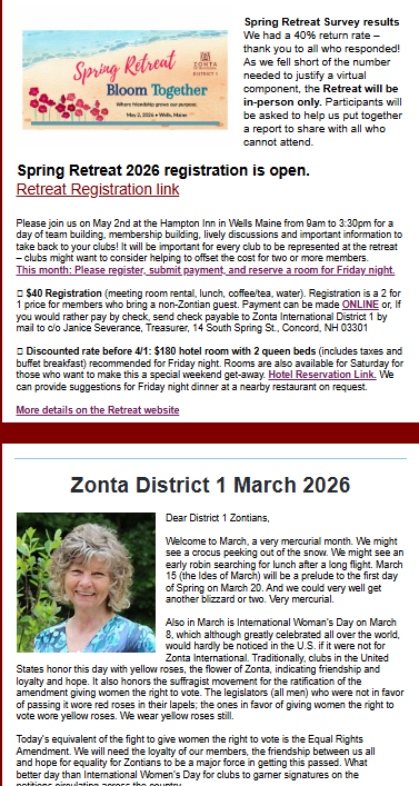 Invite to District 1 Spring Retreat